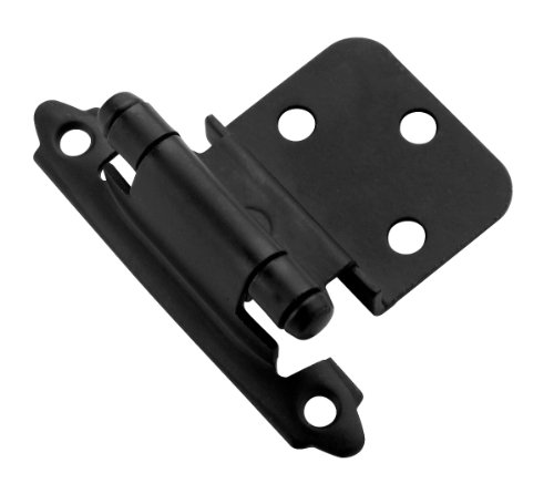 Finish:Flat Black Self-Closing, Face Mount Hinge, 3/8' Inset. Available in pairs only. Amerock sets the standard for smooth, self-closing hinge performance Every hinge series is tested for durability in conditions exceeding all KCMA certification requirements and BHMS standards for cycle life, strength and finish quality Heavy-duty steel construction Choice of frame wing styles to coordinate with decorative hardware Reliable, self-closing power of dual compression springs (5) #6 O.H. x 5/8'.../ Amerock BP3428FB SelfClosing Cabinet Hinge / Cabinet